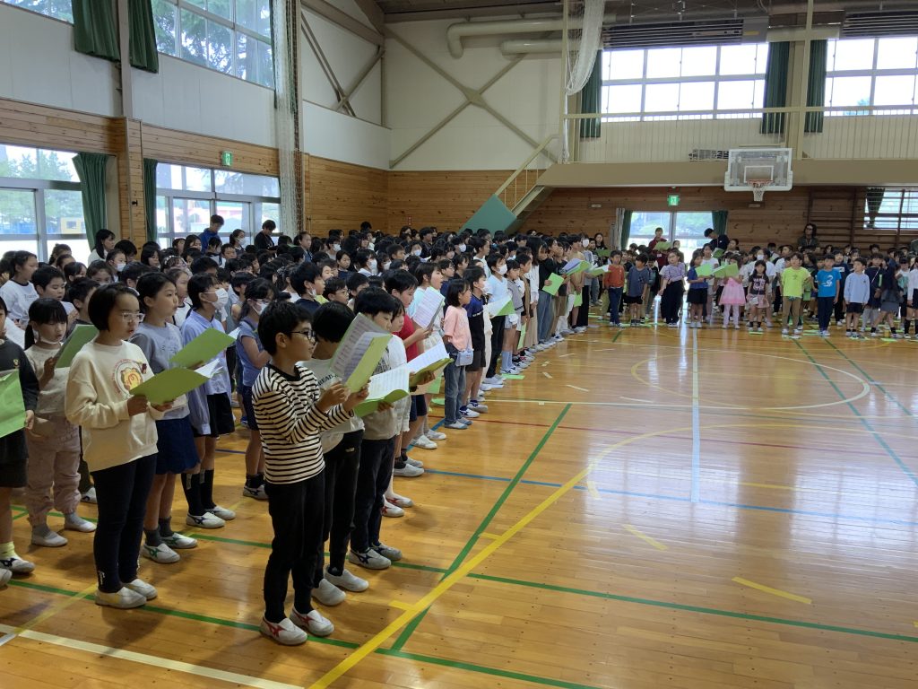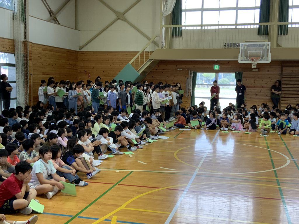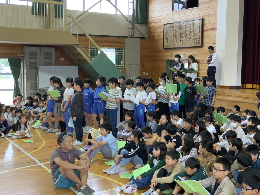 10月7日の全校音楽では、「心のブックマーク」を全校で初めて重ねて歌う時間をもちました。
