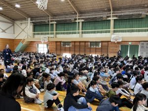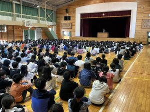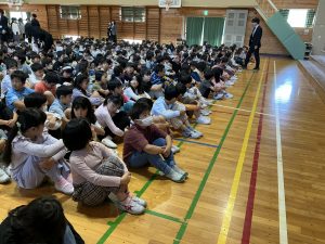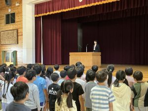 これまで熱中症対策のためオンラインでの集会が続いていましたが、この日は久しぶりに全校児童が体育館に集まりました。式が始まる前から、一人ひとりの落ち着いた姿や、学年を越えてまとまりのある雰囲気から、子供たちの成長を感じることができました。