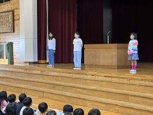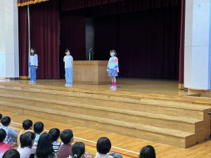 続いて、1・3・5年生の代表児童が、1学期に頑張ったことを発表しました。