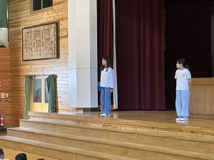 また、生活委員会を中心としたあいさつ運動や、一人ひとりの取り組みによって、学校に「元気なあいさつ」が響くようになったこと、掃除の時間の意識が高まり、学校の「きれい」が保たれるようになったことなど、学校全体の成長をみんなで振り返る時間となりました。