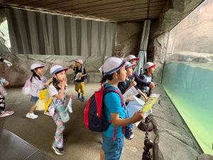 動物を見ながら、「わあ、大きい!」、「どうして吠えないんだろう?」、「お腹が空いているのかな?」など、図鑑やテレビで見るだけでは得られない具体的な感想や疑問を抱き、熱心に観察する姿が見られました。