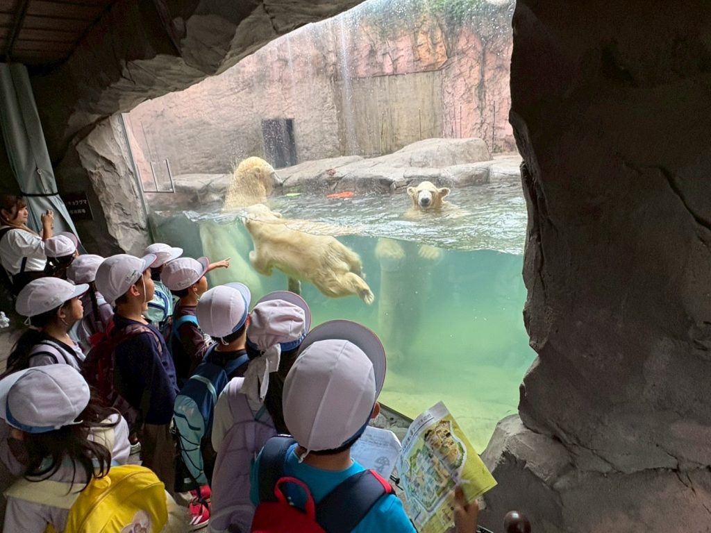 今回の遠足では、1年生が4〜7人のグループに分かれて行動しました。事前に自分たちで話し合って「見たい動物のルート」を決めていました。
