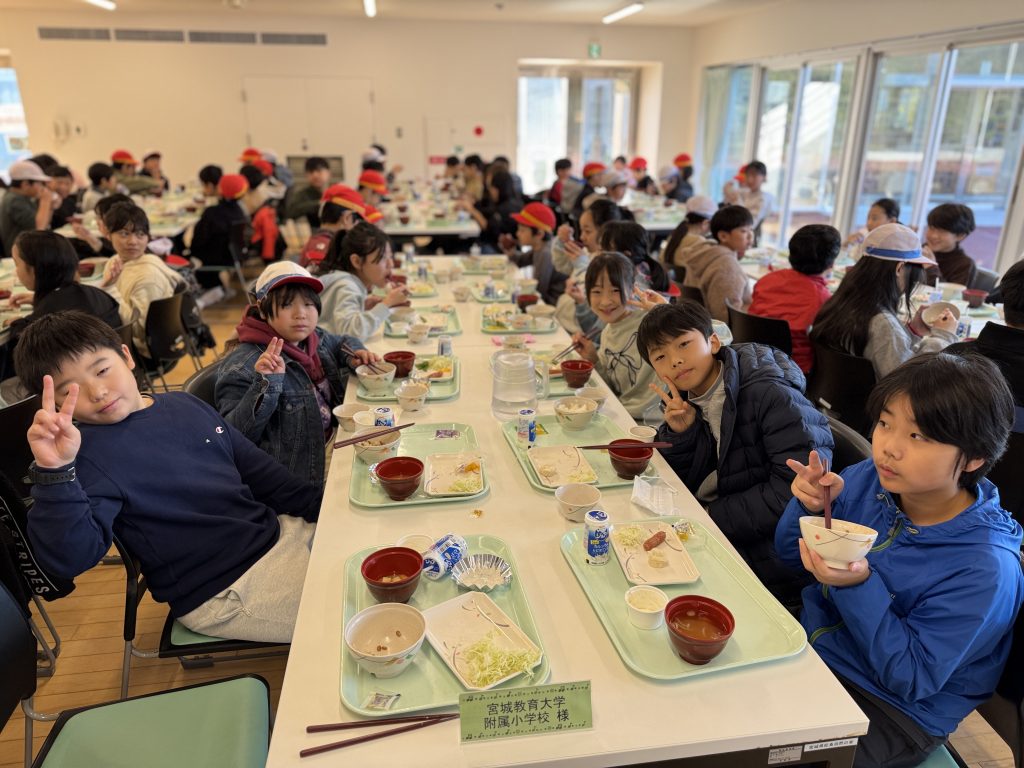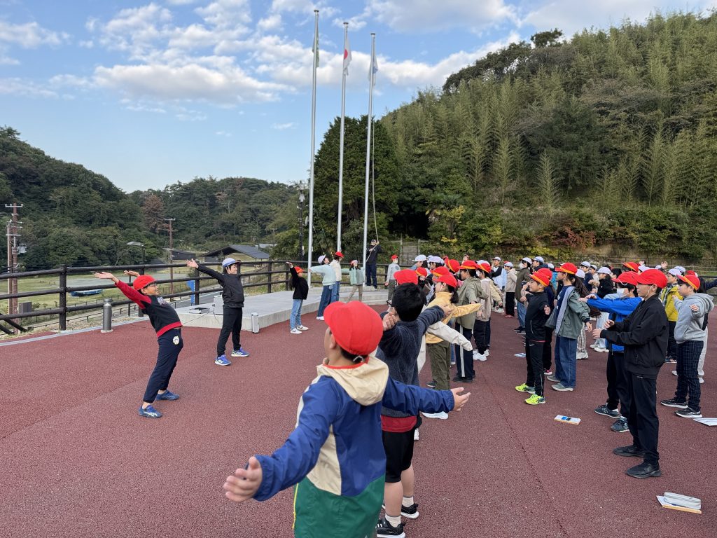 2日目は、朝の集いを行いました。よく晴れた空の下、体操をして気持ちの良い空気をたくさん味わっていました。
