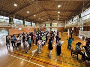 学年合唱や学級合唱に向けて頑張っています。まずは「口を大きく開けること」「声を遠くに届けること」などに取り組んでいます。 今後は、アルト、ソプラノに分かれて練習していき、パートごとの厚みを高めていけるよう頑張っていきます。