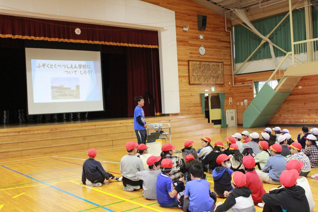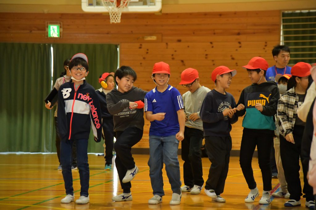 11月20日(木)には、附属特別支援学校のわかば学級と2回目の交流を行いました。わかば学級の先生から、附属特別支援学校ではどのような勉強をしているのか、学校の特色を聞いて学んだ後に、わかば学級のお友達と一緒に「リズミック」をして楽しみました。わかば学級の先生の指示をよく聞き、様々な動きを楽しむ姿が見られました。
