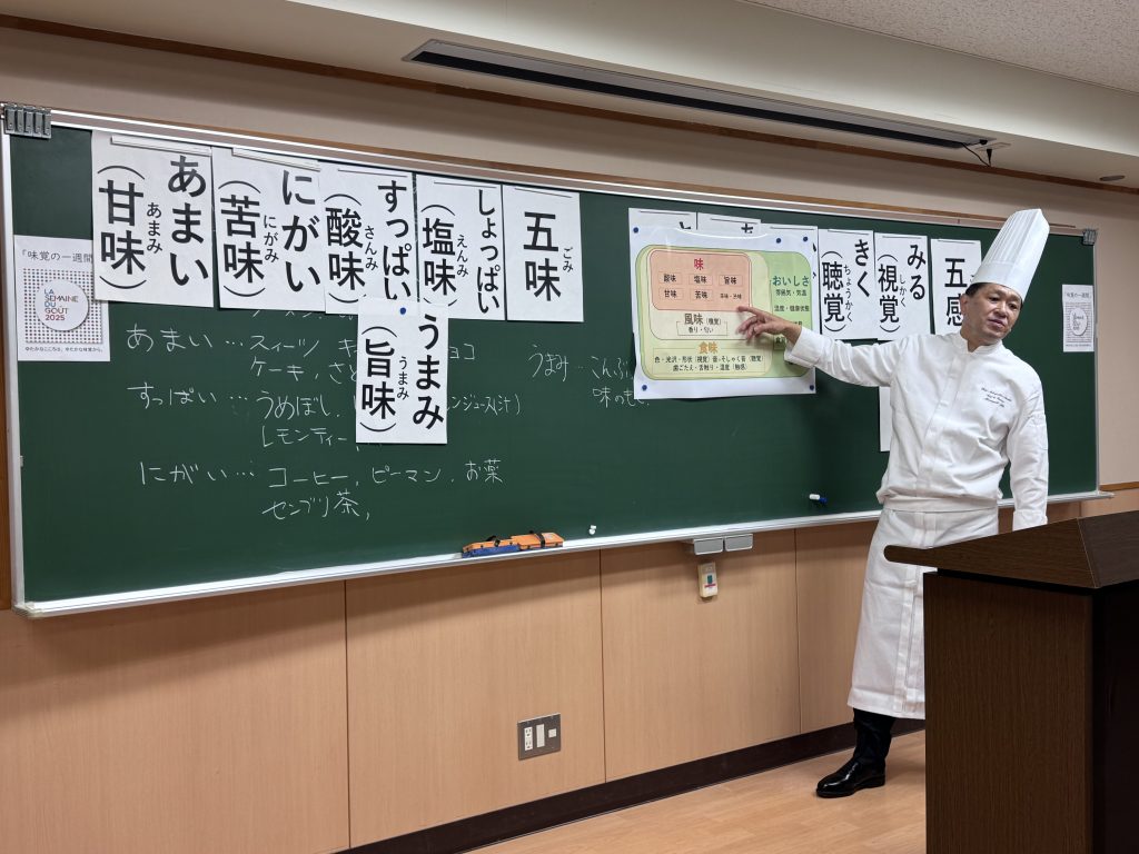 11月13日(木)に味覚の授業が行われました。子供たちは、五感を活用しながら、味の基本となる4つの要素(「塩味」「酸味」「苦味」「甘味」)に、第5の味といわれる「うまみ」を加えた5味についての知識や味わうことの楽しみに触れることができました。