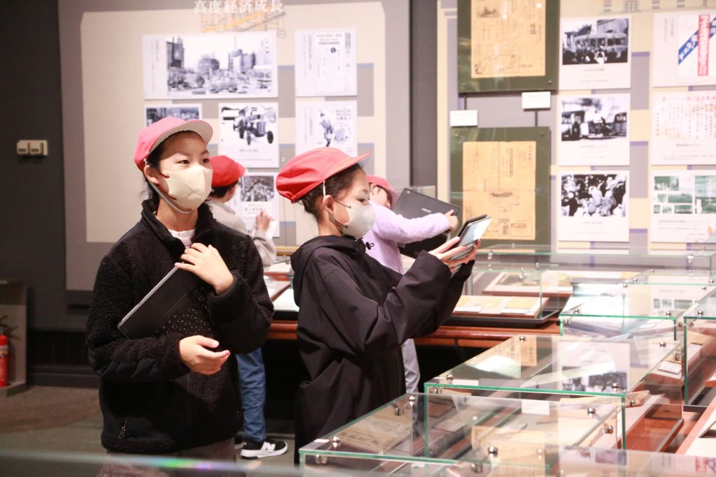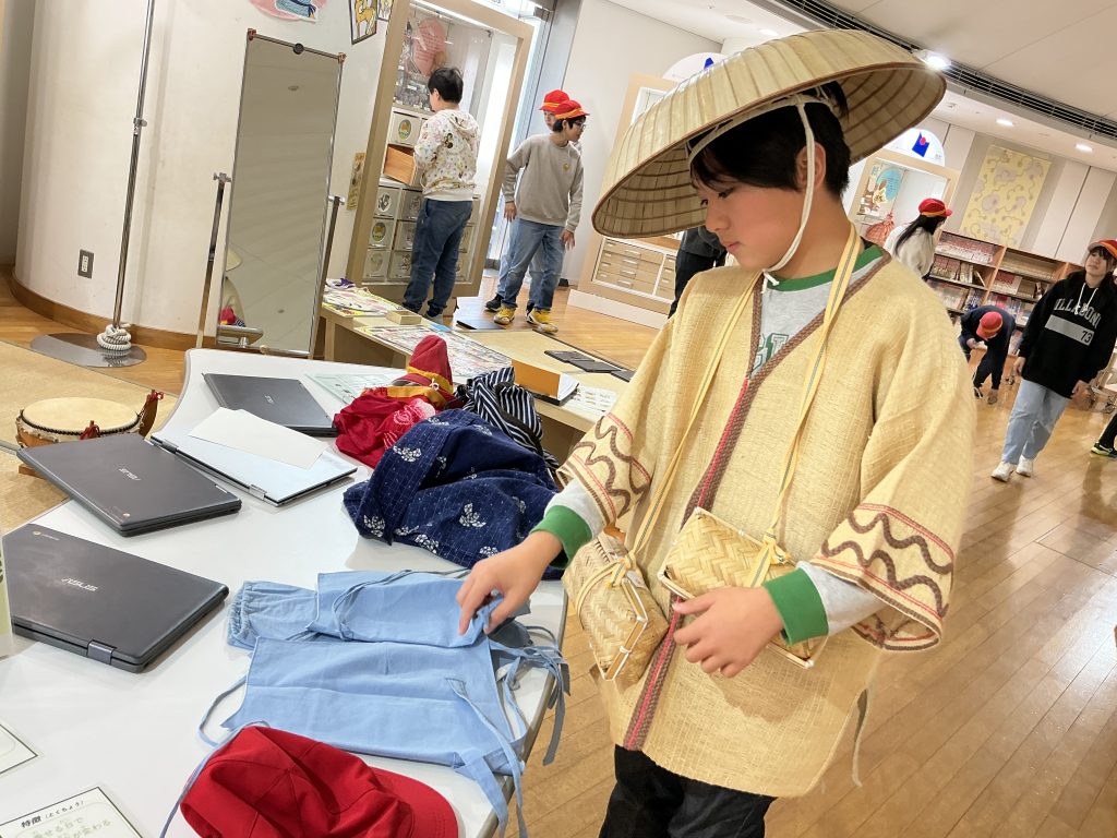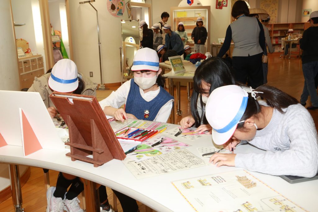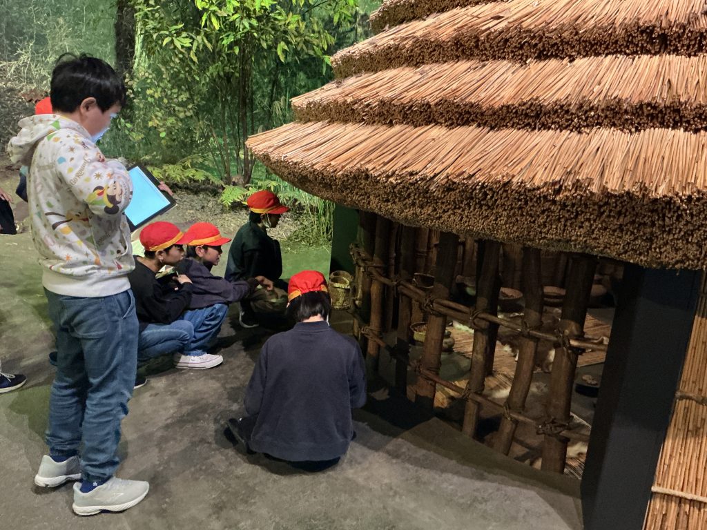 11月7日(金)に、校外学習で東北歴史博物館へ行きました。初めて行ったという子供も多く、教科書で見ていた「竪穴式住居」の実物大模型や実際に発掘された土器などにみんな興味津々の様子。熱心に観察したり記録したりしながら見学していました。常設展のほかに、「宮城に生きる民俗-暮らしを伝えるモノ語り-」と題した特別展も見学し、これまでに学習した宮城の伝統工芸品やゆかりのある地域の道具を見付けては嬉しそうに観察する姿が見られました。シアターやワークコーナーでは、クイズや体験を交えながら楽しく歴史を学ぶことができました。バスに乗って校外に出掛けるのも小学校最後ということで、車内でのひと時も子供たちにとって忘れられない思い出になったようです。