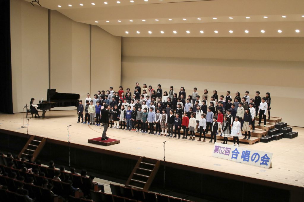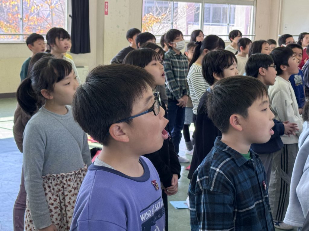 学年合唱、学級合唱、校歌、全校合唱の計4曲を歌い切りました。