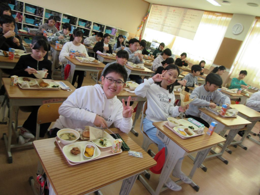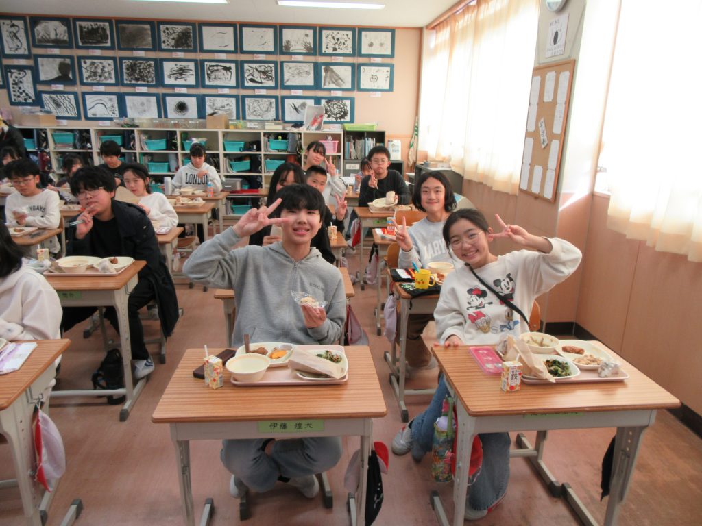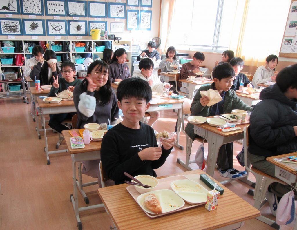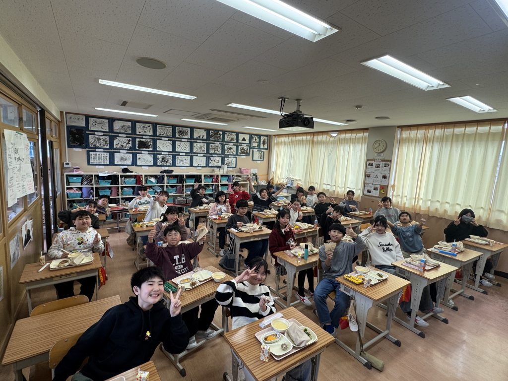 冬休み前最終日は6年生だけのスペシャル給食の日でした。子供たちは事前に五大栄養素やカロリーなどについて学習し、自分たちで献立を選びました。当日は配膳台2台にびっしりと並ぶ豪華なメニューに大興奮!たくさんおかわりしながら、おいしくいただきました。