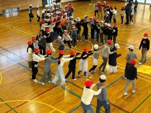 翌日には、ひまわり委員が企画した学年イベントが行われました。クラスを越えて交友を深めるためのじゃんけん列車だけでなく、サプライズでの合唱も行われました。