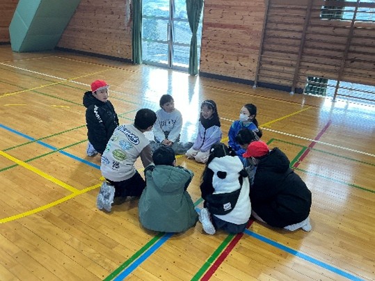 集会の中ではさまざまな活動を行い、クラスを越えて好きなことについて話し合ったり、新年の目標を伝え合ったりしました。