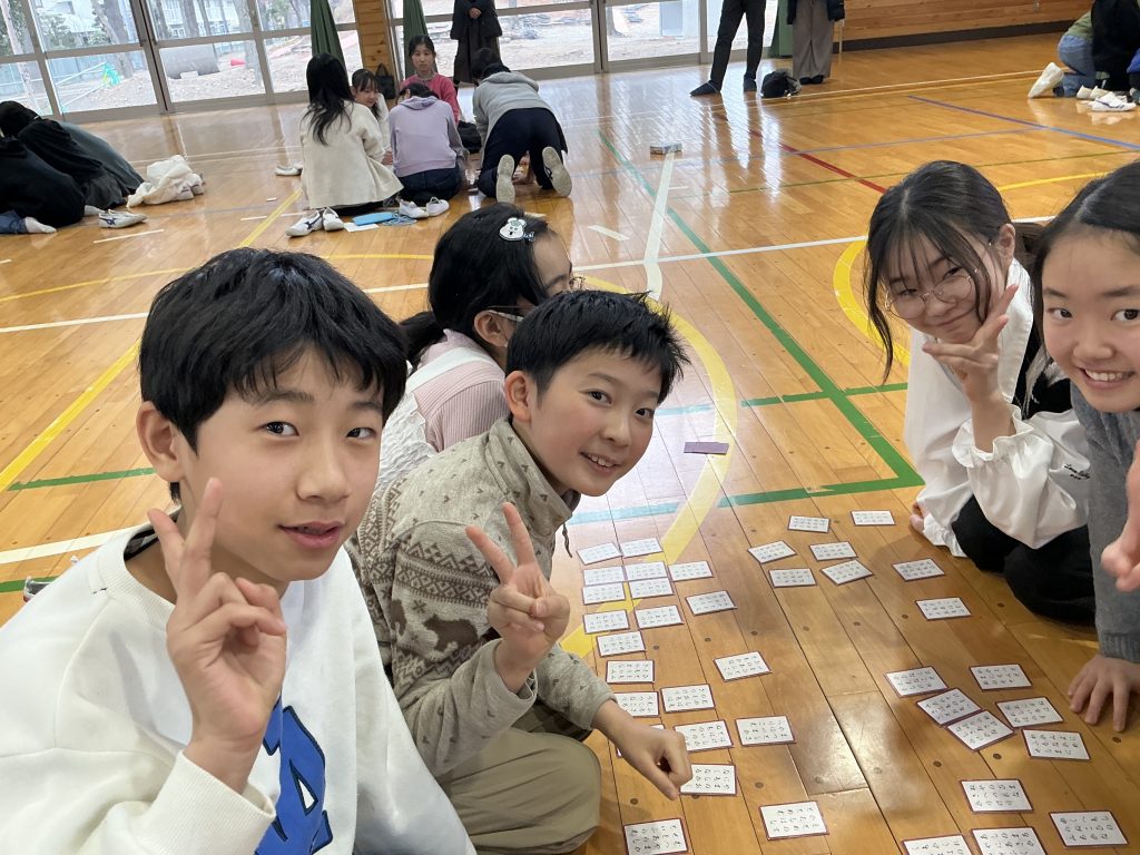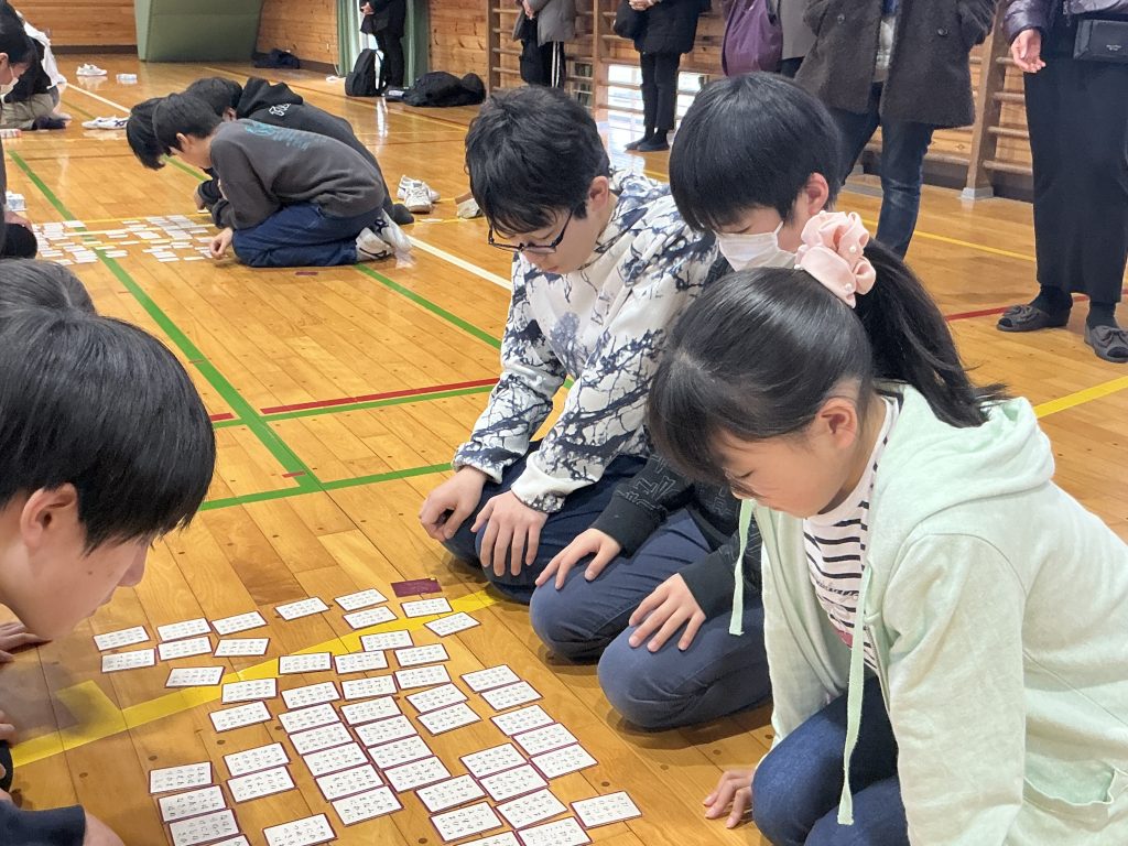 百人一首に取り組み始めて4年目となり、得意な句や好きな句も増えた子供たち。上の句を聞いたとたんにすばやく伸びる手、真剣なまなざしがとても印象的でした。